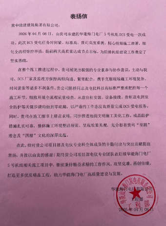 表扬信中提到,面对工期紧、标准高的挑战,项目部高度重视,坚持超前策划、精细管控,主动加强与业主、DCS厂家及监理方的协同联动,科学组织施工,严格把控盘台柜安装、设备接线、盘柜送电、安全防护等每一道工序。全体参建人员迎难而上,克服现场环境复杂、交叉作业多等不利因素,最终提前完成受电任务,为后续机组调试及投产筑牢了坚实基础。受电过程中,项目部始终以“零疏漏”标准开展全流程质量检查,同步推进地面文明施工和成品防护,现场整洁规范、美观有序,充分彰显了公司“四精”文化的深厚底蕴。业主称赞项目团队“精益求精”,并希望后续施工中继续打造精品工程。