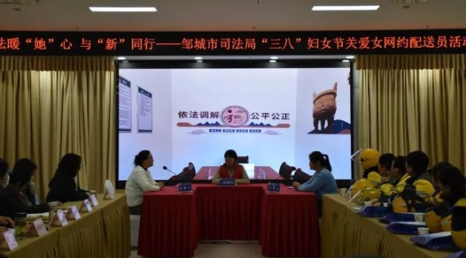 山东法制传媒网:3月6日下午,在“三八”国际妇女节来临之际,山东省邹城市司法局牵头主办的“法暖‘她’心·与‘新’同行”关爱女网约配送员主题活动在市公共法律服务中心举行。来自全市的20名女网约配送员代表受邀参加,市委社会工作部、市妇联、市市场监管局相关科室负责人出席活动。