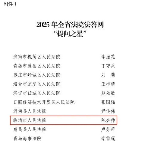 山东法制传媒网:近日,山东省高级人民法院发布《关于2025年全省法院法答网运行情况的分析》,评选了2025年度全省法院“提问之星”“答疑之星”各10人,优秀咨询答疑50篇。其中,临清法院陈金帅获评2025年全省法院法答网“提问之星”!临清法院李腾提出的问题“刑事诉讼中为取得谅解书,被告家属与被害人签署的借条,后未按照约定履行,出具欠条的行为及法律关系如何认定?”获评2025年全省法院法答网优秀咨询答疑!