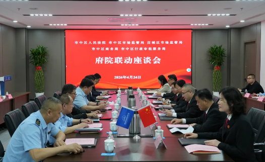 山东法制传媒网:(张文静)4月24日,在第26个世界知识产权日来临之际,山东省济南市市中区人民法院联合市中区市场监督管理局、商务局、行政审批服务局及历城区市场监督管理局,在山东未来云谷召开“深化府院联动赋能行业纠纷化解”知识产权保护专题府院联动座谈会,凝聚跨部门合力,共筑知识产权保护屏障,助力区域创新发展。济南中院审判委员会专职委员、二级高级法官毕惠岩,市中区法院党组书记、院长陈明,济南知识产权法庭庭长刘军生出席会议,会议由市中区市场监督管理局党组书记、局长张敬轩主持。