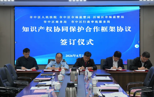 会议举行了知识产权协同保护合作框架协议签署仪式,市中区法院、市中区市场监督管理局、历城区市场监督管理局、市中区商务局、市中区行政审批服务局共同签署协议。此次签约标志着五部门正式建立特许经营领域知识产权保护常态化协作机制,将进一步打破部门壁垒、整合保护资源,推动司法与行政保护高效衔接、同向发力,健全多方联动、多元共治的知识产权协同保护体系。