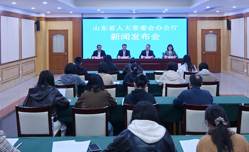 部分中央驻鲁及省直主要新闻单位的多家媒体参加新闻发布会。(山东省人大常委会)