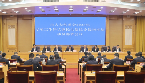 会上,宣读了《淄博市人大常委会2026年专项工作评议实施方案》和《2026年民生建设分线指挥部推进落实方案》,5个民生重点工作牵头承办单位作了表态发言。