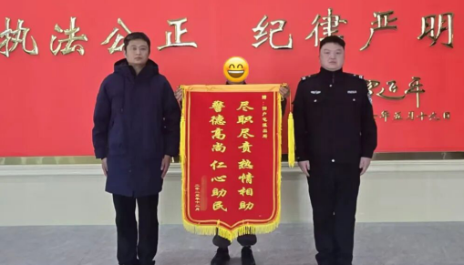 12月11日,佃户屯派出所内暖意融融,辖区群众将一面写着“尽职尽责热情相助,警德高尚仁心助民”的锦旗送到民辅警手中,向帮助他找回走失亲人的民辅警表达深深的谢意。