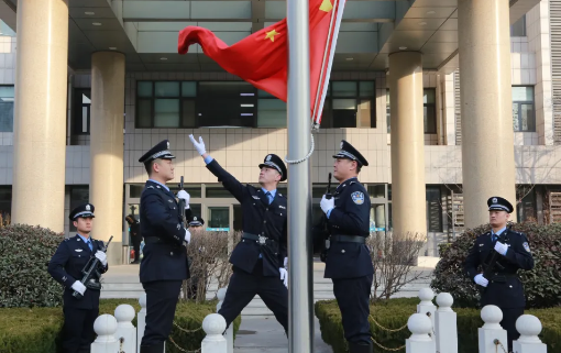 山东法制传媒网:(张大亿)2月3日,为进一步提升队伍凝聚力、向心力、战斗力,激励全警以更加强烈的政治担当履行好新时代使命任务,山东省济南市公安局市中分局举行升国旗仪式。在家局领导,各单位主要负责同志及民警、辅警代表共110余人参加活动。分局党委委员、副局长孙岩同志讲话,党委委员、政工室主任赵巍同志主持仪式并领誓。