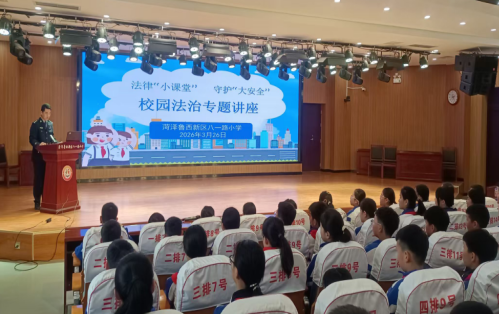 3月28日,高铁站派出所所长尹军华以“筑牢法治防线,守护青春成长”为主题,为菏泽第一中学南京路校区师生带来沉浸式法治课堂。
