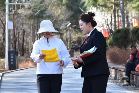 春日的林间步道上,我们也曾拿着普法宣传单,向过往的群众讲解森林防火、婚姻家庭、民间借贷等与生活息息相关的法律知识。有村民拿着手机里的转账记录问我:“姑娘,我借出去的钱要不回来,这聊天记录能当证据不?”有老人指着宣传单上说:“我家孩子在外打工,我得让他看看这个。”我们耐心地解答每一个问题,用最通俗的语言把法条变成群众听得懂的“家常话”。看着他们紧锁的眉头渐渐舒展,我知道,这些看似琐碎的工作,正在一点点筑牢基层法治的根基。