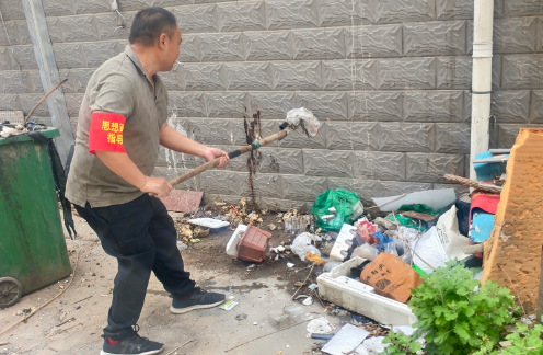 在整治现场,张大哥手持工具,对小区墙角、绿化带等卫生死角的积存垃圾、废弃杂物进行彻底清理。面对油污、杂物堆积的难点区域,他不怕脏、不怕累,仔细清扫每一处角落,不放过任何卫生盲区。从清运废弃板材到捡拾零散垃圾,从规整乱堆物品到清理墙面污渍,他始终干劲十足,用汗水换来了小区环境的焕然一新。