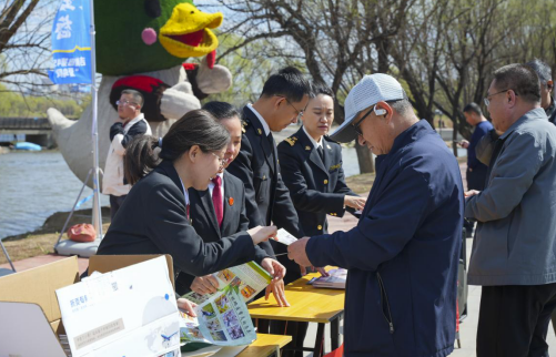 4月23日,在长白岛湿地公园活动现场,由吉林铁路运输法院与吉林市林业局、桦甸市森林公安分局、吉林海关等多家行政机关单位工作人员组成的联合普法小队面向过往游客和周边群众开展生态法治宣传。吉林铁路运输法院干警通过发放生态保护宣传单、现场答疑、案例讲解等方式,普及《中华人民共和国生态环境法典》、《野生动物保护法》、《森林法》等法律法规,细致解读非法猎捕、交易、伤害野生动物及破坏林地资源行为的法律后果,引导群众树立自觉保护野生动植物、守护生态环境的法治意识,鼓励群众主动举报破坏生态环境的违法行为,营造全民参与、共同护绿的良好氛围。