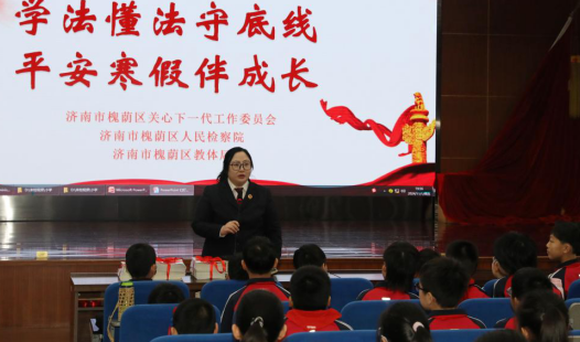 山东法制传媒网:(槐检宣)为切实增强中小学生法治意识与自我保护能力,让寒假成为安全成长的“充电期”,近日,山东省济南市槐荫区人民检察院联合区关心下一代工作委员会、区教育和体育局、区心理服务机构联合开展“学法懂法守底线平安寒假伴成长”法治宣教活动。
