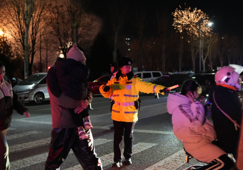 山东青岛交管全警护航 市民游客平安温馨迎新年