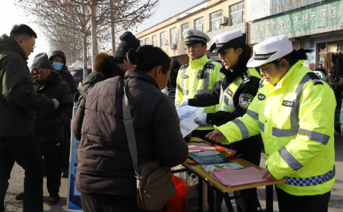 这些宣传活动,既增添了“年味儿”,又将交通安全送到了群众的“心坎”上,受到了广大群众的欢迎。图为:1月27日上午,交管大队宣传民警深入柏城年集宣传交通安全知识。