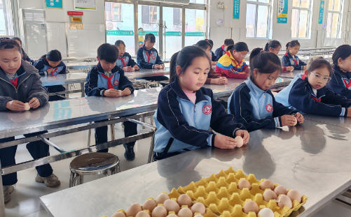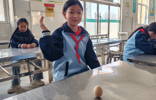 在“春分立鸡蛋”比赛中,同学们每人手持一个生鸡蛋,屏息凝神,轻手尝试将鸡蛋竖立在桌面上,短短10分钟内,有不少同学都成功立起鸡蛋。比赛不仅考验了同学们的耐心和技巧,更让他们亲身体验了传统民俗乐趣。学校评选了“节气文化小标兵”和“节气文化小使者”,鼓励他们继续传承和弘扬中华优秀传统文化。