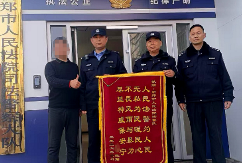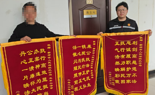 图片:为表达谢意,当事人为该院执行局和法警大队送来锦旗。