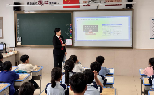 普法课堂上,朱亚楠同志结合小学生的年龄特点和认知规律,用通俗易懂的语言、贴近校园生活的案例,围绕交通安全、自我保护、网络安全、校园欺凌防范等与学生息息相关的安全及法律知识展开讲解。通过互动问答、案例剖析等形式,让法律条文变得生动易懂,引导同学们树立正确的法治观念,学会辨别危险、规避侵害,掌握基本的自我保护方法,自觉做到尊法、学法、守法、用法。现场气氛热烈,同学们积极参与互动,纷纷表示学到了实用的法律和安全知识,今后会时刻牢记安全准则,做文明守法的好学生。