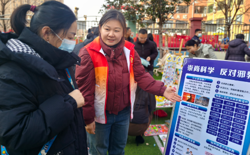 活动现场,社区工作人员摆放了多块宣传展板,用图文展示邪教的常见类型、伪装手法和现实危害,并结合真实案例,说明邪教对个人、家庭和社会造成的伤害。工作人员还走到居民中间,特别是向老年朋友和周边商户发放反邪教宣传页,用通俗的语言讲解如何识别邪教陷阱,提醒大家注意那些打着“养生保健”“祈福消灾”幌子的可疑活动。
