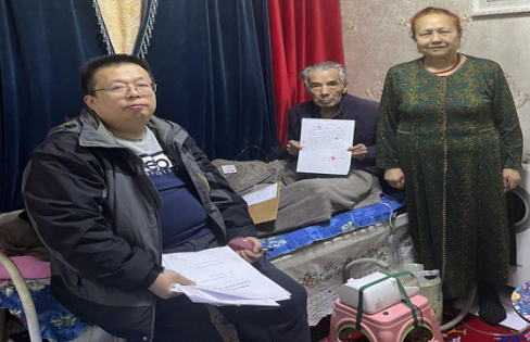 近日,阿克苏市不动产登记中心接到吐拉汗女士的申请,得知其丈夫因年迈多病行动不便,无法亲自到阿克苏市不动产登记中心办理登记业务这一特殊情况后,阿克苏市不动产登记中心迅速组织人员进行上门服务,当天下午携带相关设备和资料,前往老人住所办理业务。在办理业务中,工作人员耐心地向老人及家属解释办理不动产登记业务的详细流程和重要环节,认真审核资料,并进行信息采集与录入工作。给老人成功办理完业务后,老人家激动地握住工作人员的手说道:“太感谢你们了,你们帮我们解决了一个大困难,让我们感受到了满满的关怀与温暖”。