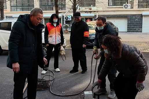 居民将情况反映给社区后,社区立刻牵头,联系村委、小区物业,还动员社区退役军人参与。退役军人高老师得知消息后,第一时间主动报名:“我在部队干过维修,管井疏通我有经验,这活儿我来搭把手!”