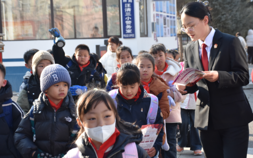 理论入脑,实践入心。放学时段,普法活动从课堂移至校园门口。法院联合汪清县交警大队设立临时“马路安全实践点”,干警与交警化身“校外安全辅导员”,开展沉浸式实景普法。