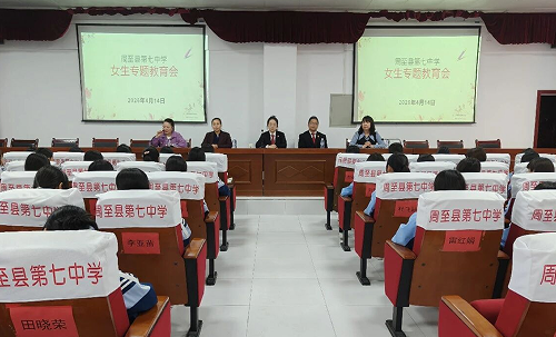 山东法制传媒网:(罗成标 郭萌)为切实增强未成年女学生的法治观念和自我保护意识,有效预防和遏制校园欺凌事件发生,营造安全、文明、和谐的校园环境。2026年4月14日,陕西周至法院秦岭法庭庭长、周至县第七中学法治副校长罗成标,周至法院刑庭法官助理郭萌为周至县第七中学全体女学生带来了一场“预防校园欺凌,守护青春绽放”为主题的专场法治宣讲活动。
