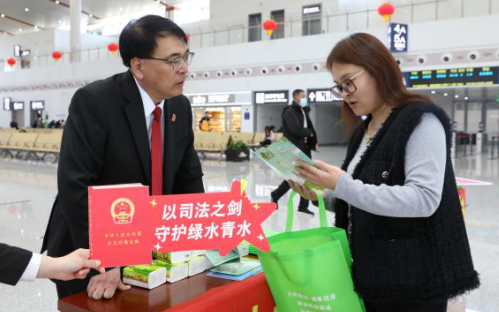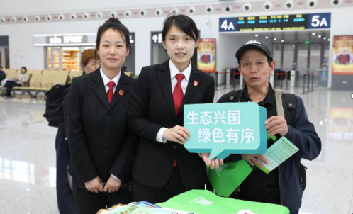 候车厅里,普法小摊前人头攒动。一张张打卡照片、一条条朋友圈动态,让生态法治的声音随着高铁和网络,传向四面八方。