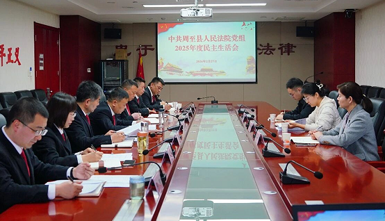 山东法制传媒网:(李夏萌)按照党中央和省委、市委、县委部署要求,2月27日下午,陕西省周至人民法院党组召开2025年度民主生活会。会议由院党组书记、院长马春哲主持,全体领导班子成员参加会议。县委督导组、县纪委、县委政法委同志到会指导。