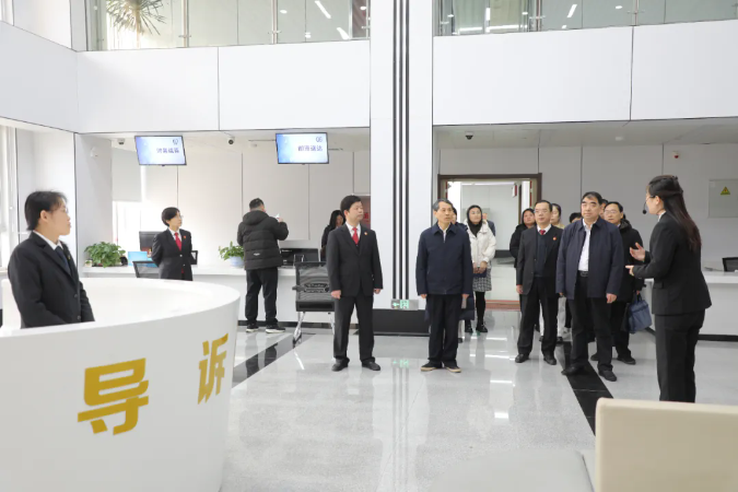 在法院讲解员的引导下,代表委员一行先后实地参观了诉讼服务中心、特色调解室、执行指挥中心、司法警察文化墙等场所,全方位、多角度了解了法院日常工作运转流程。每到一处,大家都认真聆听,直观感受法院在提升办案质效、优化诉讼服务、破解执行难题等方面的务实举措。
