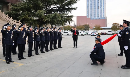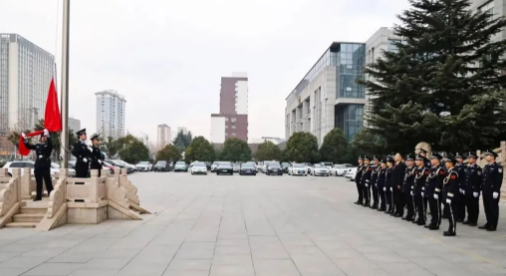 全体法警身着警服,整齐列队,伴随着雄壮激昂的国歌,鲜艳的五星红旗冉冉升起。他们面向国旗庄严敬礼,用炽热的目光诉说着对祖国的无限忠诚与对人民的深厚情怀。激昂的旋律回荡在法院上空,凝聚起司法干警恪尽职守、护航正义的坚定信念。