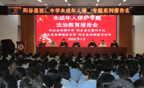 此次法治报告会内容丰富、针对性强,既普及了法律知识,又提升了师生的法治素养和自我保护能力,为构建安全、和谐、文明的校园环境奠定了坚实基础。下一步,阳谷县司法局西湖司法所将持续深化“法治进校园”活动,创新普法形式、扩大覆盖范围,让法治精神浸润更多青少年心田,为未成年人健康成长筑牢法治“安全屏障”。
