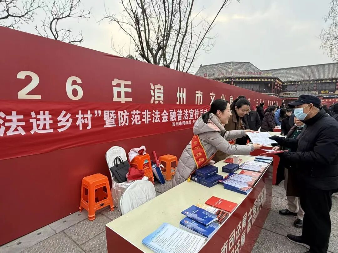 山东法制传媒网:1月28日,山东省滨州市司法局在无棣县古城参加2026年滨州市文化科技卫生“三下乡”集中服务活动,开展年末岁初防范非法金融活动普法宣传,切实把法律服务送到群众家门口。
