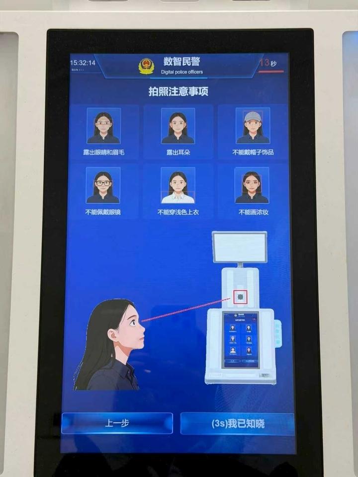 更值得一提的是,这台机器小巧灵活,自带背景智能处理功能,对拍照环境要求极低,无需专门搭建专业拍照背景,可以直接放置在业务大厅等公共区域。这一特点不仅降低了部署门槛,也为后续在更多派出所及警务站推广应用奠定了坚实基础。届时,每个派出所可根据业务量轻松配置多台终端,一名民警可同步统筹3至5台机器,实现人力与效能的双重提升。