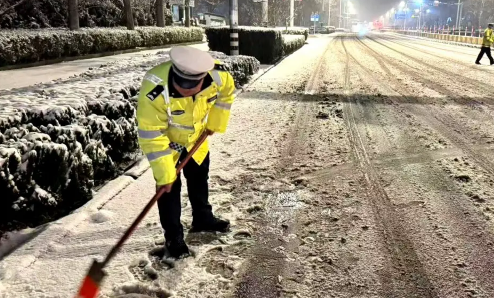 自昨晚8时起,全市公安交管部门全面强化路面巡检与视频巡查,实时掌握国省道、高速公路、高架路及进出城主干道通行状况,加强与气象部门联动,密切关注天气变化,动态调整警力部署与管控措施,扎实做好各项应急准备。夜间10时至凌晨2时雨夹雪天气期间,各辖区大队进一步加大巡逻密度与管控力度,在易结冰积雪路段、高架桥匝道、弯道、立交枢纽等重点区域设置固定岗,通过亮警灯、鸣警笛提醒过往车辆减速慢行,并在积雪路段提前抛撒防滑沙,加强指挥疏导。高速公路大队增派警力上路,备足融雪剂、警示标识等物资,保障应急处置需求。同步采用“警车巡+视频巡”结合的方式24小时不间断巡查,重点排查桥梁、长大下坡等易结冰路段,联动养护部门开展除雪作业,协调救援力量前置部署,确保信息共享、高效配合。同时,交管部门严格落实警情快速处置机制,对信号灯故障、交通事故、车辆故障及群众求助等各类情况做到第一时间响应、高效处置,最大限度减少恶劣天气对交通运行的影响。