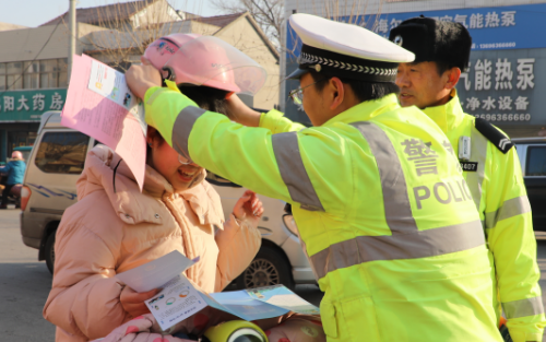 除了定点宣讲,民辅警们还穿梭在各摊位之间,向摊主、采购的乡亲递上图文并茂的宣传资料,以及大红福字,祝福新年。同时,结合群众身边发生的交通事故,讲解农用车载人、超载、不佩戴头盔的风险,特别是骑乘不戴头盔、酒驾醉驾、三轮车违法载人导致的惨痛教训。提醒大家夜间出行尽量穿着颜色鲜艳或带反光条的衣物,能引起车辆驾驶人的注意,避免受到意外伤害;过马路遵循“一慢二看三通过”的通行原则,确保安全再通过,引导群众增强安全意识,提高自我保护能力。