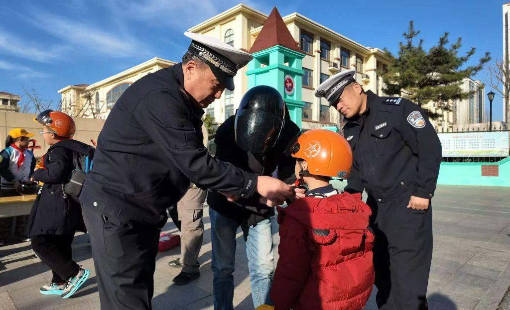同时民警采取提问互动的形式,围绕“几岁能骑电动自行车上路”“头盔如何正确佩戴”等问题展开趣味问答,答对的孩子还获得了安全头盔。