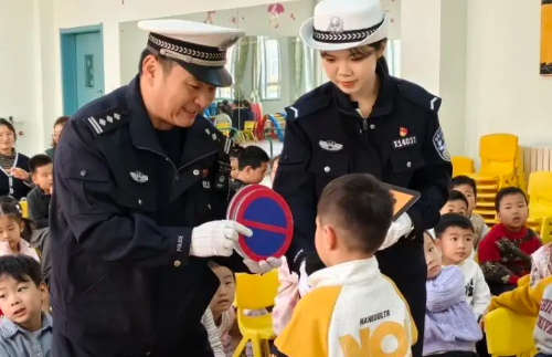在大苹果幼儿园,民警用卡通图片、情景讲解等方式,为孩子们普及“红灯停、绿灯行、走斑马线”等基础交规,手把手示范如何正确佩戴安全头盔,讲解乘车系好安全带、不将头手伸出窗外等注意事项,引导孩子们从小树立安全出行意识。