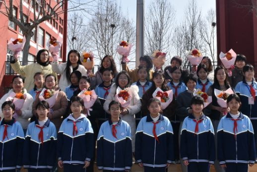仪式现场,同学们开展“我心中的她”献花环节,将一束束鲜花送到女教师、女职工手中,用最纯真的心意表达感恩与祝福。一张张笑脸、一声声问候,定格成春日校园里最温暖的画面,让温情与敬意在彼此心间流淌。
