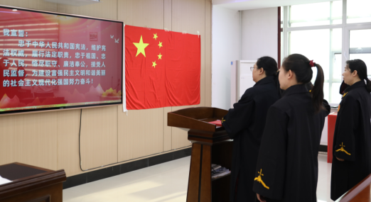 山东法制传媒网:(唐晓菲)为弘扬宪法精神,维护宪法权威,进一步增强新任职法官的使命感、责任感和荣誉感。1月15日上午,山东省白山市江源区人民法院举行新任职法官宪法宣誓仪式。仪式由院党组成员、政治部(督察室)主任门昊泉主持。