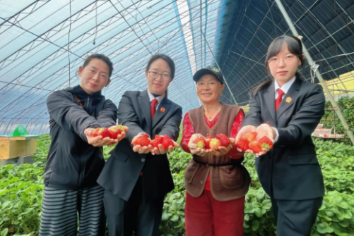 在“采摘+普法+助农”趣味互动现场,法官与种植户、企业员工、游客围坐一起,一边体验草莓采摘、山野菜品鉴的乐趣,一边开展法治问答、发放普法手册。此次活动不仅把法律知识送到大家身边,更搭建起法院、企业从业者、消费者间的沟通桥梁,有效化解两大特色产业发展中的法治痛点、难点,为特色产业高质量发展筑牢法治根基。