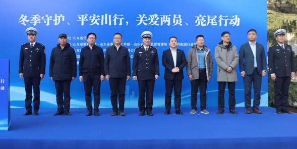 山东法制传媒网:为积极应对冬季复杂道路交通环境,切实保障快递、外卖行业从业人员出行安全,有效预防和减少道路交通事故,12月15日,“冬季守护、平安出行,关爱两员、亮尾行动”主题活动在省公安厅交通管理局正式启动。活动由山东省公安厅主办,中国平安财产保险股份有限公司山东分公司(以下简称“平安产险山东分公司”)承办,省委宣传部、省委社会工作部、省市场监管局(快递外卖行业党委)、省道路交通安全协会、省邮政速递物流有限公司等单位共同协办,驻鲁主要快递、外卖企业参与活动。