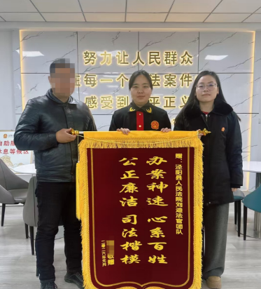 拿到调解书后,郭某特意送来一面写有“办案神速心系百姓,公正廉洁司法楷模”的锦旗,对法院高效为民的办案作风给予高度评价。