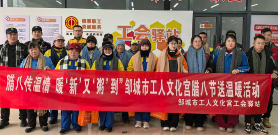 山东法制传媒网:(范谦谦 侯明娜)1月26日,山东省邹城市工人文化宫开展了“腊八传温情暖‘新’又‘粥’到”腊八节送温暖活动。为外卖员、快递员等户外劳动者送上节日慰问。