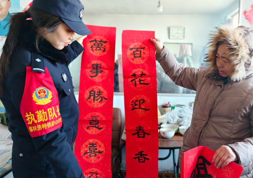 “新年快到了,我们给您送春联和福字来了,祝您新年快乐,身体健康!”民警们一边将红彤彤的春联和福字递到群众手中,一边送上真挚的新春祝福。同时,针对沿线群众出行特点,通过“拉家常”的方式进行铁路安全宣传,提醒大家时刻紧绷安全弦,守护好自身安全。
