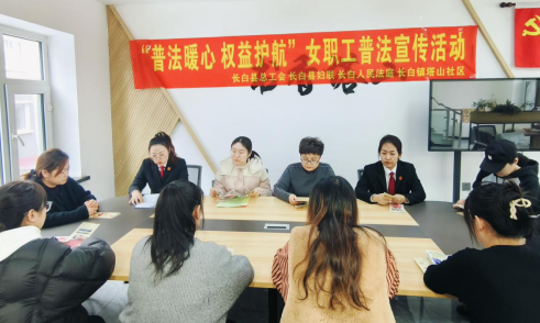 ——吉林省长白朝鲜族自治县人民法院长白法庭联合县妇联、县工会开展反家暴普法进社区宣传活动