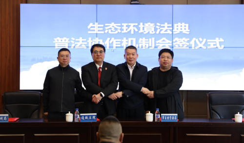 上午九时,通化铁路运输法院会议室气氛庄重热烈。党组书记、院长林海军与市自然资源局、市水利局、市生态环境局三家行政机关负责同志共同签署《关于常态化开展〈中华人民共和国生态环境法典〉普法宣传协作机制》。红头文件,四方签章,标志着司法与行政在生态普法领域正式结成“协同作战”的紧密纽带。